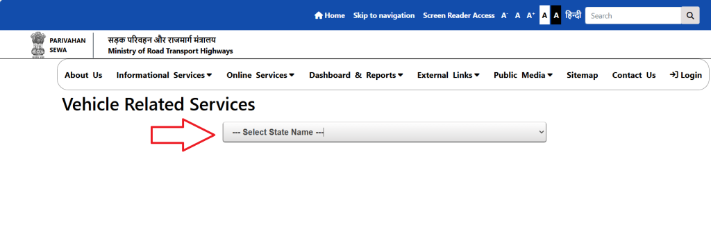 - first open Parivahan portal and select main menu to Online Services to Vehicle Related Services.